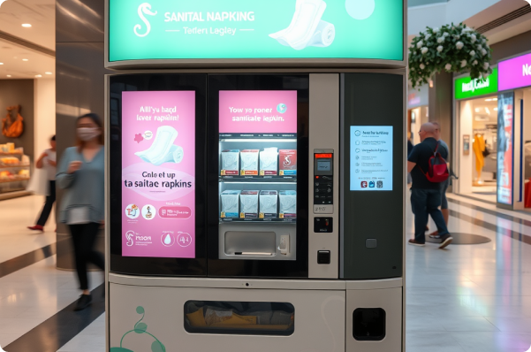 through our vending machines, conveniently placed in public washrooms. Each product is hygienically packaged to ensure maximum safety and comfort. Our products are sourced from trusted manufacturers and available at reasonable prices, making it easy for women to access what they need at any time.